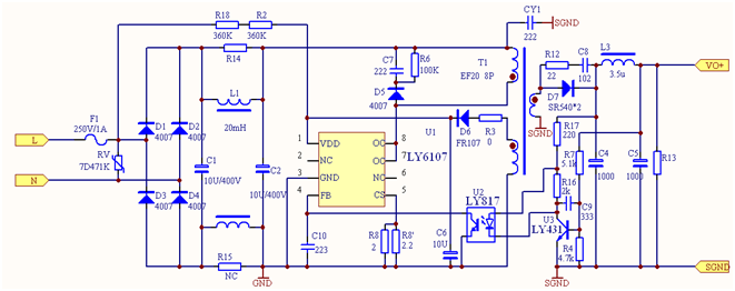 充電器適配器副邊反饋5V* 2A=10W典型應(yīng)用電路圖